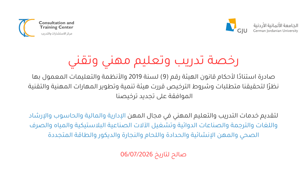 © 2014 - 2026، الجامعة الالمانية الاردنية، جميع الحقوق محفوظة.