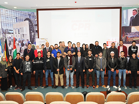 The School of Basic Sciences and Humanities at the German Jordanian University (GJU) organized a workshop entitled "Heartsaver" in cooperation with the Specialty Training Center in the Specialty Hospital, which comes within March the “Heartsaver” month in the Middle East& North Africa (MENA) region.