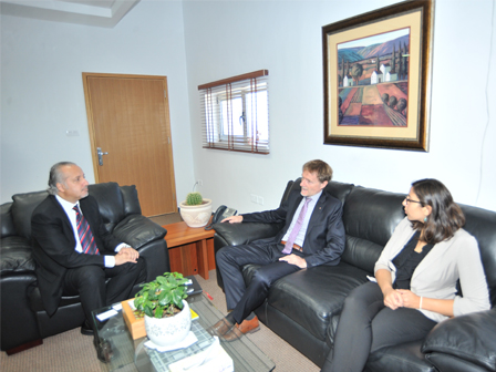 On Tuesday 22 July, 2014, the GJU President Prof. Natheer Abu. Obeid metPeter Haaks, Executive Director Middle East at DB International and Farah Nimri, Assistant Engineer to the Regional Director and a GJU graduate in the presence of the GJU Vice President for International Affairs, Prof. Anton Mangstl.