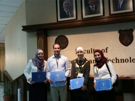 A project by Enas Abboud, Mechatronics student, and Mohamed Abu Hantash, Biomedical Engineering student, won the first place at the Eighth National Technology Festival (Medical and Technology) which took place at the University of Jordan on 29 April, 2015.