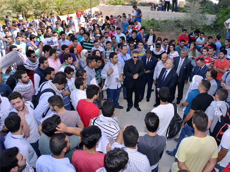 Students form the German Jordanian University marched side by side with the President, Prof. Natheer Abu Obeid and other staff members around the campus, on a demonstration of support and solidarity to the Palestinian resistance, in the light of the recent violations of holy sites in Jerusalem and across Palestine.