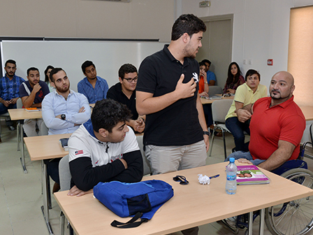 World Weight Lifting Champion among people with special needs, Mr. Mo’taz Al Junaidi concluded his lecture with a saying which he lives by, namely: