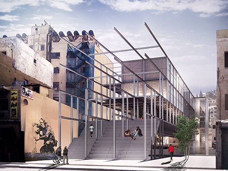Stitching the pockets | Khan Amman, is her graduation project, the whole project is a way to connect pockets located in Quraish street, downtown physically through a hanging structure as well as connecting them by creating a positive interaction between different markets in the area through the core of the project by that Khan Amman deceases the negative competition but units the street through a new interesting typology.