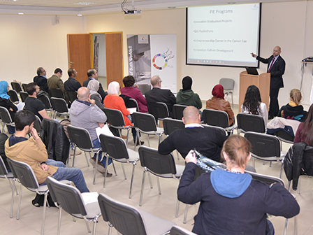On Monday November 16, GJU’s Office for Industrial Links (OIL) and Concrete, the student entrepreneurship club at the GJU, organized the “Start and Sustain Your Business” event as part of the Global Entrepreneurship Week (GEW) activities at GJU. These activities fall under the Program for Innovation and Entrepreneurship (PIE) at the OIL, which aims to fulfill GJU’s vision of Education for Employment and Entrepreneurship.