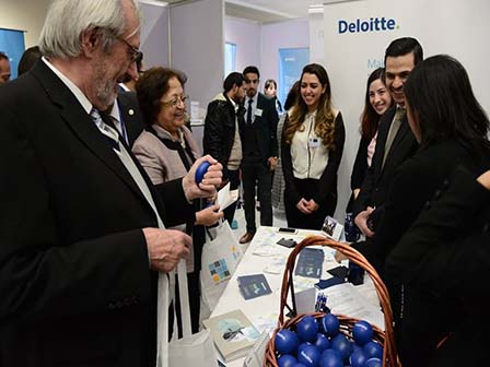 The 6th GJU Career Fair took place on 13th April 2016, on GJU campus. Continuing its trend of continued growth, GJU students and graduates engaged with 98 exhibitors on four floors and in two different buildings. GJU Vice-Presidents Prof. Manar Fayyad and Prof. Dr. Anton Mangstl, along with other academic staff, visited the fair and underlined the importance of close university-industry connections.