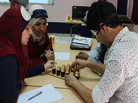 Since the 17th of April, the GJU Vision Training Center (VTC) is hosting the second of a series of four training courses for trainers from Afghanistan, Egypt, Jordan, Pakistan, Palestine (West Bank and Gaza) and Tajikistan. In addition to the cultural diversity, more than half of the participants are themselves visually impaired (7 of 13). Last week, the training was provided by experts from Royal Dutch Visio (Netherlands), while this week it is offered by the low vision specialists from the VTC. The project includes a third partner, CBM International (Germany based NGO).