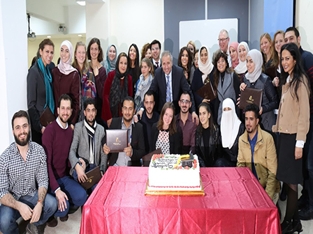Ms. Hala Abu Obeid, one of the graduates spoke on behalf of her colleagues, expressing her enjoyment of this course, where she got the chance to learn and work with students from different backgrounds, specialties, and nationalities.