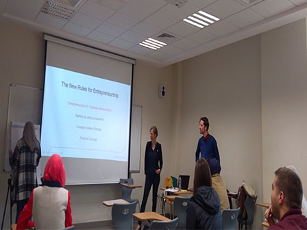 Dr. Johanna Richter and Mr. Simon Joachim gave several lectures in social entrepreneurship classes in the frame of GJU’s flying faculty program in which they introduced several concepts of the foundations approach in supporting entrepreneurs and pitching the ideas for the investors and the community.