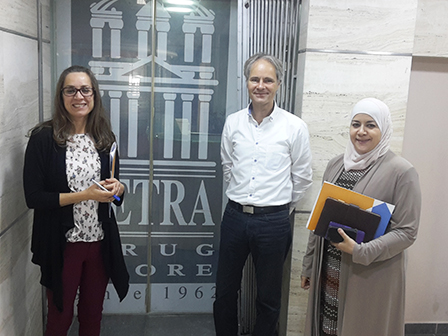 For this reason, Randolph Galla, GJU’s Dual Studies Advisor, met Hala Al Azzeh (Human Resources Manager) and Sawsan A. Taqi-Eddin (Head of Logistics Department) on the 24th of October at the premises of Petra Drugstore in Sweifiyyeh and gave a comprehensive introduction to GJU’s Dual Studies project, with a focus on Logistics. Representatives of Petra Drugstore were very impressed with what has already been achieved and will discuss with the company’s General Manager the perspectives of becoming involved in the dual Logistics program.