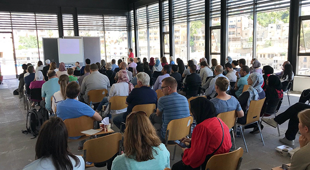 This year's German Teachers' Day for German teachers and prospective teachers from Jordan took place on June 7 in the German Lounge on the SABE campus of the GJU in Amman. For 13 years now, this training event has been organized in cooperation between the Goethe-Institut Amman and the German Language Center of the GJU.