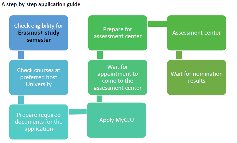 • After the nomination the student has to prepare the Erasmus+ learning agreement, which needs to be approved by either the exchange coordinator or the dean of the GJU school of the student.