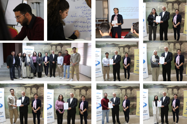 With the participation of students from six Jordanian public and private universities, attendees implemented campaigns and applied strategies aligned with the workshop’s goals. At the conclusion, Father Rifat Bader, Director of the Catholic Center, and trainer Shahrazad awarded certificates to the participants.