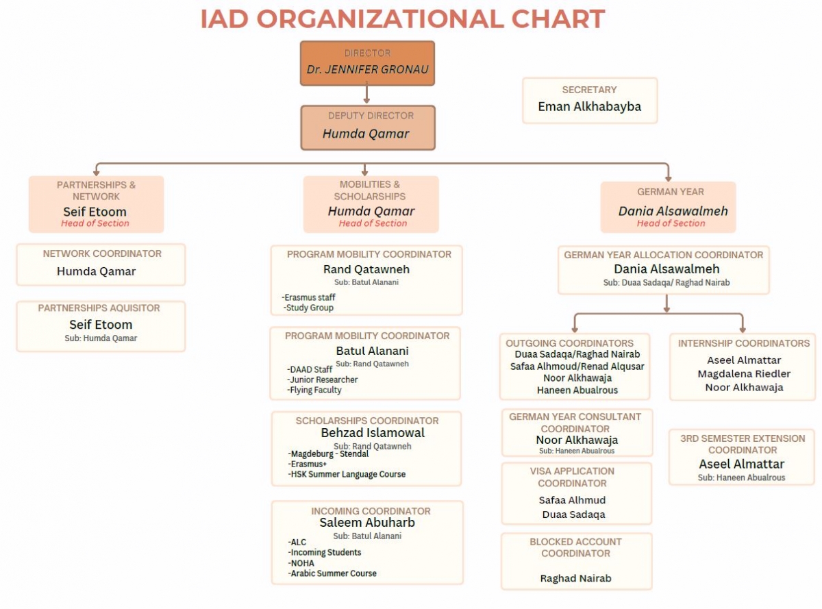 The German Jordanian University is committed to a strong cooperation with Institutions of Higher Education worldwide, especially with German Universities of Applied Sciences. All GJU Bachelor students have the opportunity of spending one year in a German speaking country abroad during their study program. This so called German Year includes a study semester at one of our many partner universities as well as an internship semester in the German Industry sector. All different sections of the International Affairs Department interlink and work together to make the international exchange possible and sustainable on all levels, be it student exchange, administrative or academic exchange. The department in its main function strengthens the GJU German Dimension, supported by the Project Office at HS Magdeburg-Stendal and is paramount in its contribution to GJU`s general internationalization strategy.