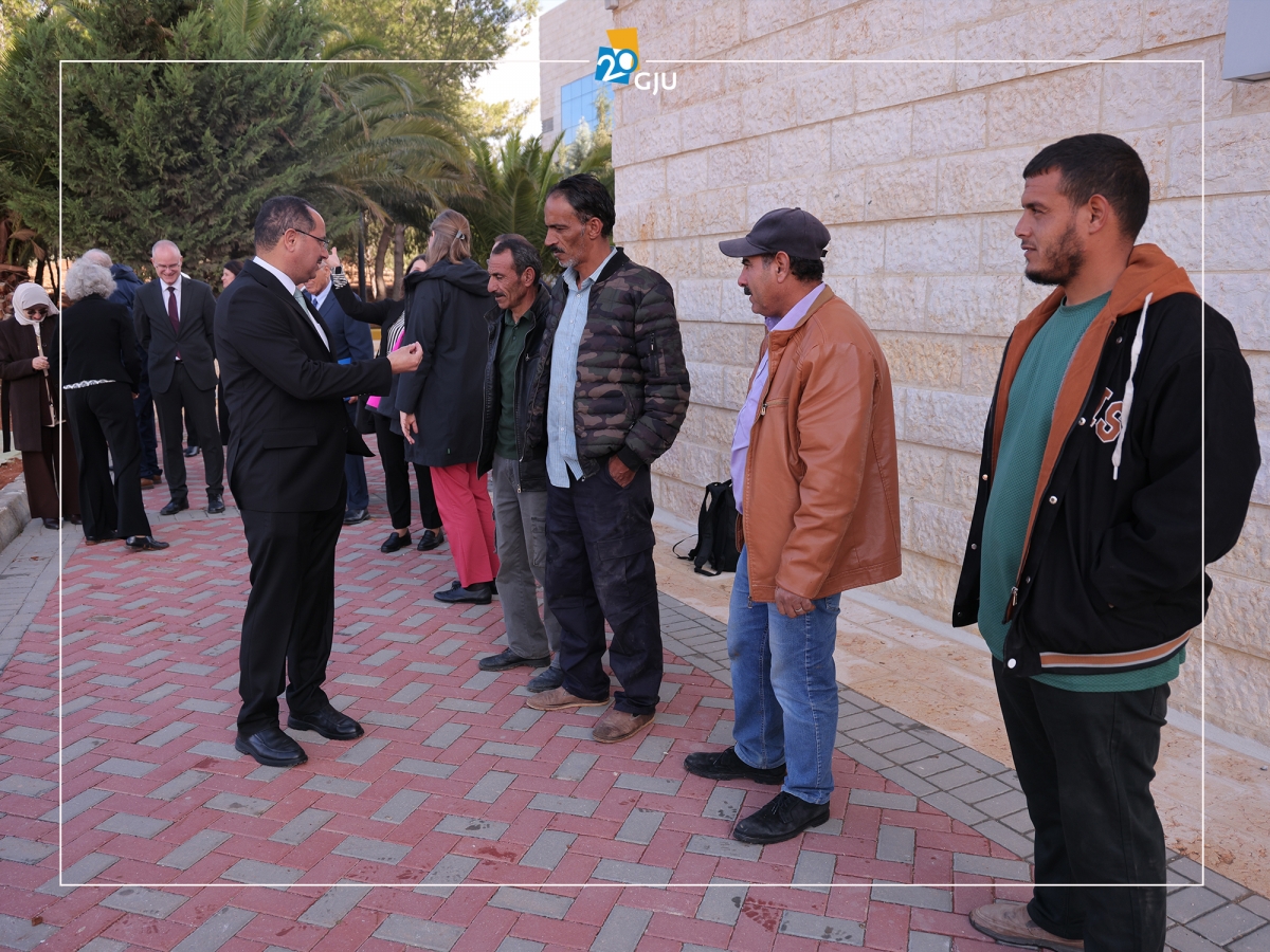 The Water and Green Environment Section at CDSD supervised Planting Almond Tree Initiative led by Magdeburg-Stendal University, the strategic partner of the German Jordanian University (GJU), the two universities celebrated the planting of a number of almond trees on the GJU campus, as part of an effort to promote sustainability and a greener environment.