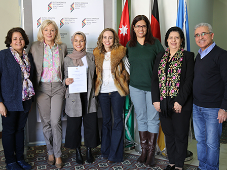In the presence of Vice Dean Dr. Maram Al-Tawil, President of the German Jordanian Society Ms. Birgit Tesic-Kurth handed Aya the certificate and reward money.