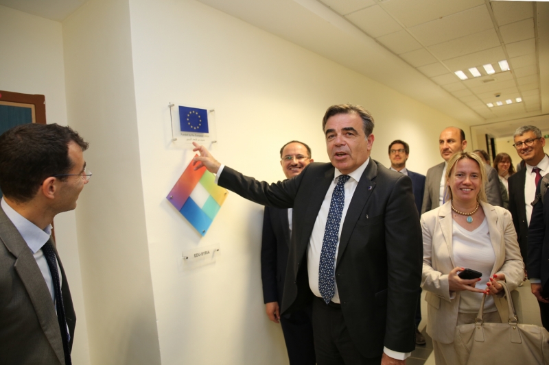 The Vice-President of the European Commission, his Excellency Mr. Margaritis Schinas, visited the German Jordanian University on Tuesday, June 4th, where he met with the students who benefited from the Syrian-Jordanian education program (EDU-SYRIA) and students who benefited from the “Erasmus Plus” cultural exchange program. In the presence of the German Ambassador to Jordan, Mr. Bernhard Kampmann, and the University President, Prof. Ala’aldeen Al-Halhouli.