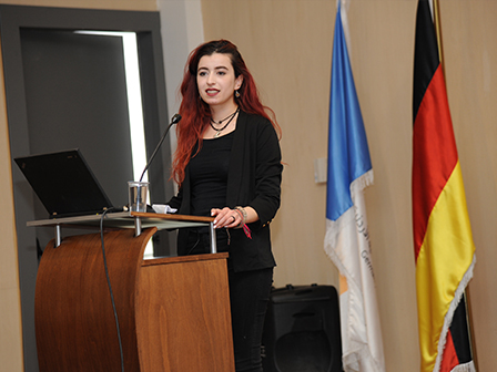 Two presentations were conducted during the ceremony, one by student Hussam Khreisat on “Living and Studying in Germany”; while the other by student Lara Nasser on “Internship in Germany”.