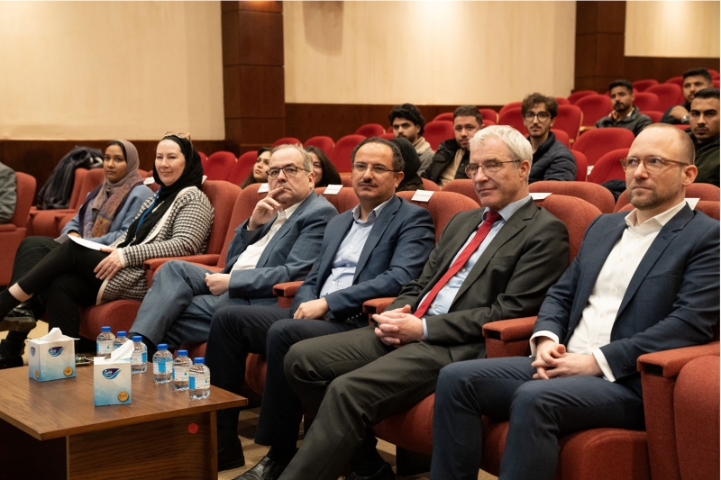 In an inspiring experience, student Murad Al-Wahsh shared his personal story, reflecting on his academic and training experiences in Germany. He highlighted the benefits he gained from this experience, including preparation, learning about German culture, and engaging productively with peers and faculty members.