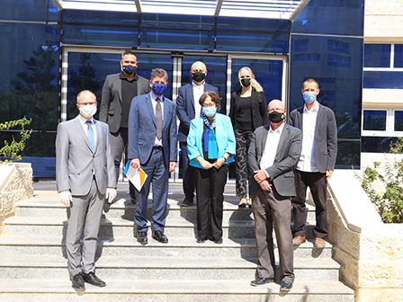 The visit aimed at visiting the campus and knowing more about the latest progress and projects at the University. Prof. Manar Fayyad introduced the University since establishment, stating the applied science approach followed at GJU as German universities. She also introduced the schools and programs, academic activities, and research besides the collaboration between GJU and Germany in many aspects.