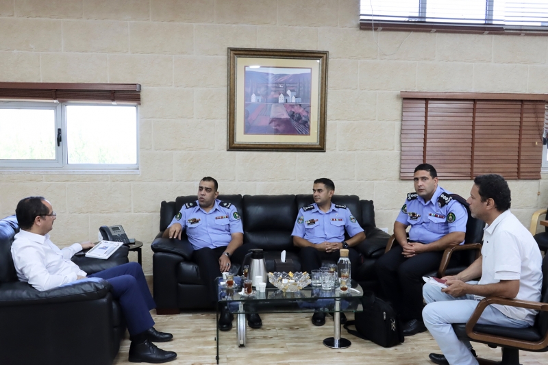 The president of the German Jordanian University (GJU) Prof. Ala’aldeen Al-Halhouli discussed with a delegation from the Royal Police Academy - Public Security Directorate the different means of cooperation in areas of mutual interest, mainly the adoption of the Journal of Security Studies for the purposes of publishing academic research.