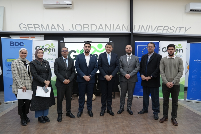 As part of supporting innovation and promoting sustainable development, Deanship of Innovation, Technology Transfer and Entrepreneurship (DI-TECH) at the German Jordanian University (GJU), in collaboration with the Business Development Center (BDC), hosted the event "Green Hackathon" within the framework of the "Green Links" project funded by the European Union.
