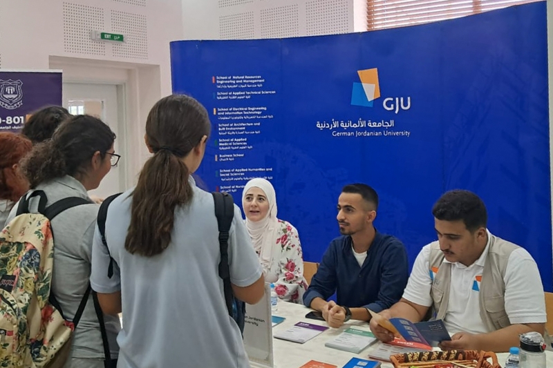 The German Jordanian University (GJU) participated in the educational fair organized by Rosary School in the Marj Elhamam area, which brought together a number of leading universities and educational institutions under one umbrella.