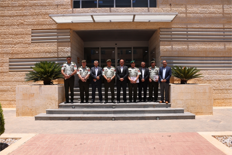 The President of the German Jordanian University (GJU), Prof. Dr. Ala’aldeen Al-Halhouli, met with a delegation from the Directorate of Military Education and Culture in the Jordanian Armed Forces, headed by Brigadier General Dr. Saleh Al-Khalaileh, to explore avenues of academic, educational, and training cooperation.
