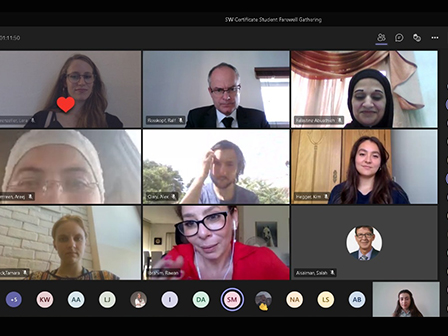 The graduation ceremony took place as a virtual meeting with the students attended by Prof. Dr. Ralf Rosskopf, Vice President for International Affairs, Prof. Dr. Salah Alsalman, Dean of SAHL, Prof. Dr. Christine Hildebrandt, Head of Social Work Department, Prof. Gourbin from the NOHA Center for Research in Demography and Societies, along with the academic and administrative staff of the program.