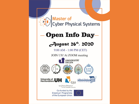 On Wednesday, 26.08.2020, the MS@CPS project partners held an online open info day about the Cyber Physical System (CPS) master program. The MS program is funded by the Erasmus+. The event was moderated by Palestine Technical College – Deir El-Balah with the presence of all partners.