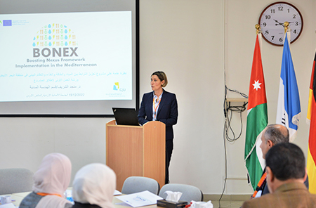 The German Jordanian University hosted the First Stakeholders Workshop for the Project “Boosting Nexus Framework Implementation in the Mediterranean” (BONEX). The workshop was organized by German Jordanian University and by the International Union for the Conservation of Nature (IUCN-ROWA). The workshop was the first event in the frame of the BONEX project, which is funded by the EU-Foundation “Partnership for Research and Innovation in the Mediterranean Area (PRIMA)”. In Jordan, the BONEX project has a specific focus on the Wadi Mujib Basin, and has the ambition to explore and develop specific solutions promoting the linking of governance with practice to overcome barriers to WEFE (water, energy, food, ecosystem) nexus and policies.