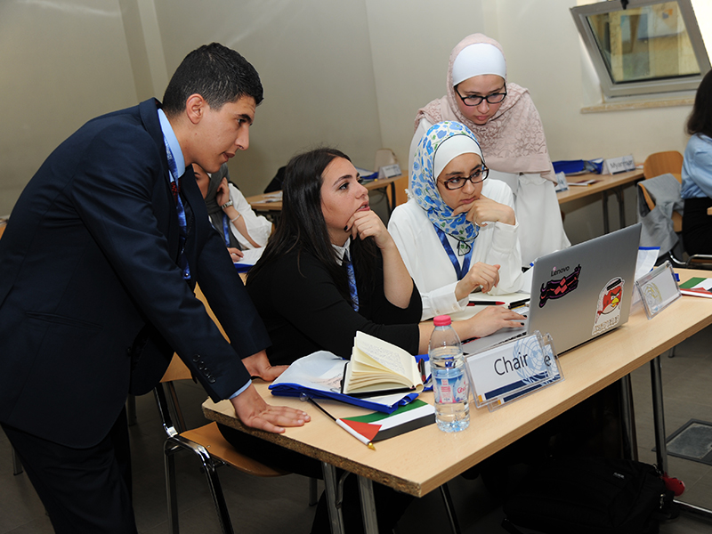 GJU Student Jumana Mals, cleared that the participants will discuss a number of issues including the US President Donald Trump's decision to recognize Jerusalem as the capital of Israel, globalization, the integration of minorities, the impact of Britain's exit from the European Union, personal freedom ,evaluation of countries seeking independence, disarmament and international security, Nuclear threats and the prevention and treatment of the illicit trade in small arms and light weapons in the Middle East, as well the League of the Arab States role in achieving stability in the region.