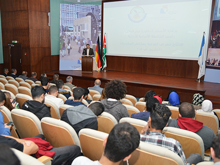 On Wednesday, November 21, 2018,  the German Jordanian University (GJU) in cooperation with Public Security Directorate, organized an exhibition to raise awareness on drugs and its riskiness among the students and staff.
