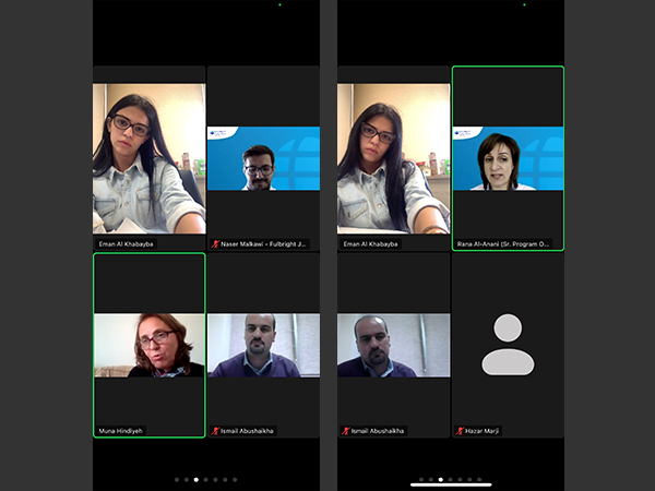 Dr. Muna Hindiyeh, an academic member of the School of Natural Resources Engineering and Management (SNREM) joined the meeting and shared her experience as Fulbright Alumna from North Carolina University. She contributed by providing the attendees with details about studying and living in the USA along with her family.
