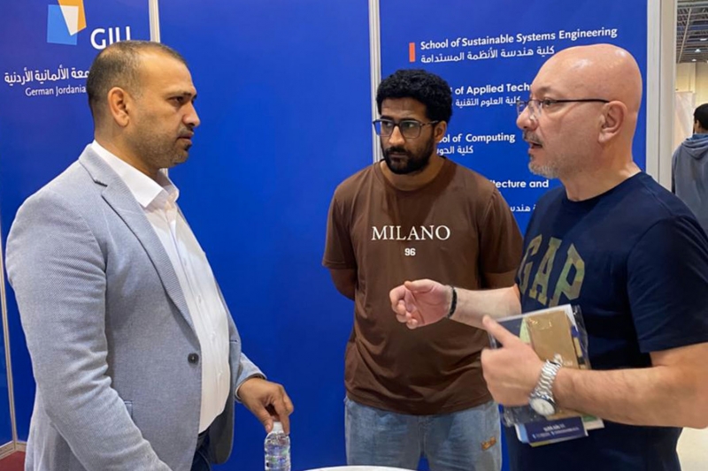 The German Jordanian University (GJU) participated in the MEETES Education and Training Exhibition held in Jeddah, Saudi Arabia, over three days, organized by iCON International for Exhibitions Management at the Jeddah Exhibition and Convention Center.