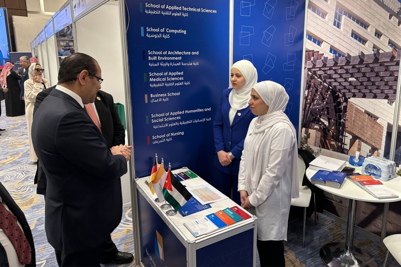 GJU’s participation aims to showcase its distinguished academic programs and its applied educational system based on strong partnerships with German universities. It also highlights opportunities for practical training, academic exchange, and employment prospects for graduates in the Jordanian, German, and global markets, in addition to the “German Year” and the dual programs and hosted programs in cooperation with the University of Würzburg in Germany.