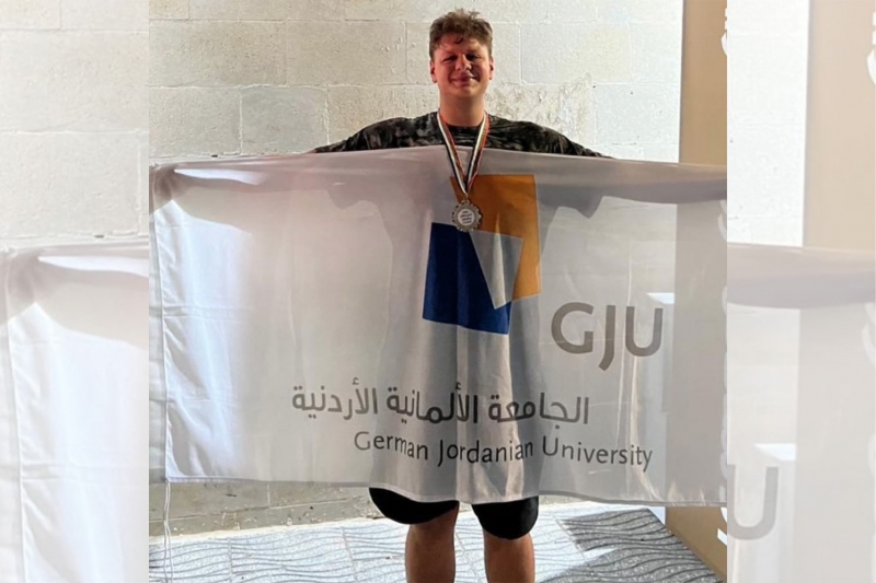 Abdullah Al-Haj Abboud, a student in the Department of Pharmaceutical and Chemical Engineering at the School of Applied Medical Sciences (SAMS), German Jordanian University (GJU), has earned a silver medal at the Prince Hashem bin Al Hussein Freestyle Wrestling Championship. The event, organized by the Caucasian Club in collaboration with the Jordan Wrestling Federation, was held under the patronage of His Royal Highness Prince Hashem bin Al Hussein.