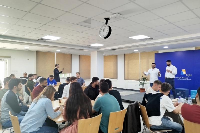 In the context of the ongoing exchange activities between the German Jordanian University (GJU) and the Duale Hochschule Baden Württemberg (DHBW) Mosbach Campus Bad Mergentheim, Prof. Siegismund visited GJU accompanied by a group of 8 Industrial Engineering students and Ms. Helga Wiese. The visit took place under the umbrella of the BWS plus project “Autumn-Summer-School Sustainability – A3S”.