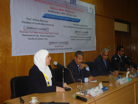 Additionally ,Dr. Mahmoud Abdel Sadek , Principal Investigator of the project at SVU ,asserted that the use of nanotechnology in medicine could revolutionize the way we detect and treat damage to the human body and disease in the future. Furthermore, Dr. Inshad Jum'h, Principal Investigator of the project at GJU, added that the workshop was a good chance to visit SVU referring to its objective and the funding source for the project.