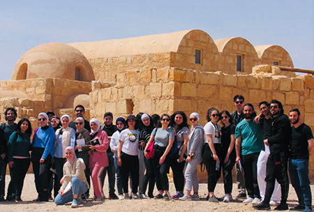 The students visited three historical sites which they were briefed about in their courses before the trip. The first site they visited was Al-Harrana Palace. It is an Umayyad palace located in the Jordanian desert, 65 km east of Amman. It was built around the year 711 AD during the reign of Al-Walid bin Abdul Malik. The second site was Qusair Amra. It is an Umayyad desert palace located in the north of the Jordanian desert, about 85 km from Amman. It is inscribed on the UNESCO World Heritage List since 1985 AD. And the third site was Al-Mashta Palace. It is one of the Arab palaces built by the Umayyads. The palace is located 32 km southeast of Amman. It was built by the Umayyad Caliph Al-Walid bin Yazid in 744 AD.