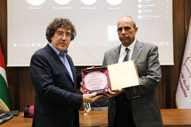 Throughout the lecture, Professor Ignacio gave an overview of the most important archaeological sites in which he carried out excavation and restoration work, such as Jabal Al Qala'a, Qasr al-Hallabat Mosque, Hammam as-Sarah, Al-Qastal, and Qasr Al-Kharranah. In addition to the work of documentation, analysis and archiving in a number of archaeological sites.