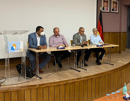 The School of Applied Medical Sciences (SAMS) at the German Jordanian University (GJU) organized an introductory session for new accepted students with the administrative faculty of the school represented by the Dean, Vice Dean and heads of departments, and exchange coordinators to introduce the school, its programs and laboratories, and to answer all their inquiries at the beginning of the academic year.