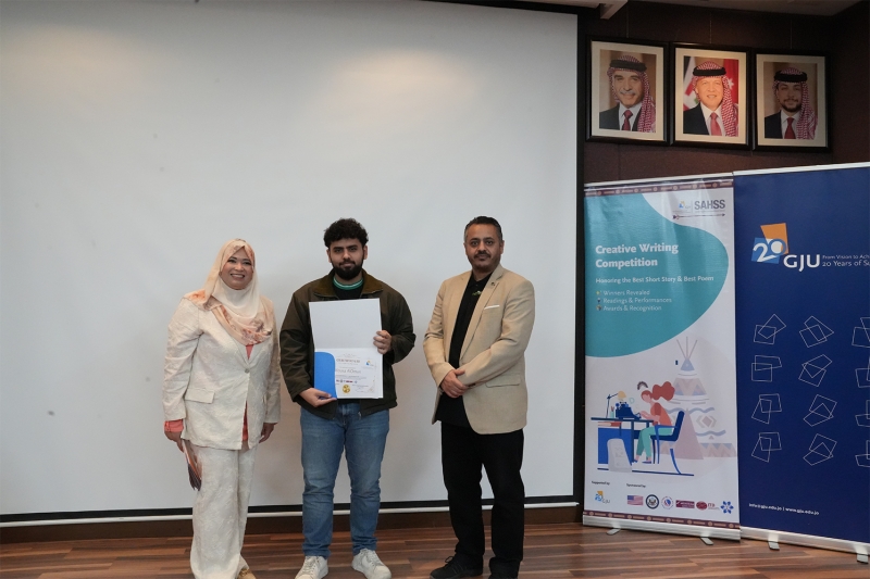 During the closing ceremony, the winning students were honored: Malak Alrawahneh received the Best Short Story award, while Abdelrahman Almatarneh won the award for Best Poem.