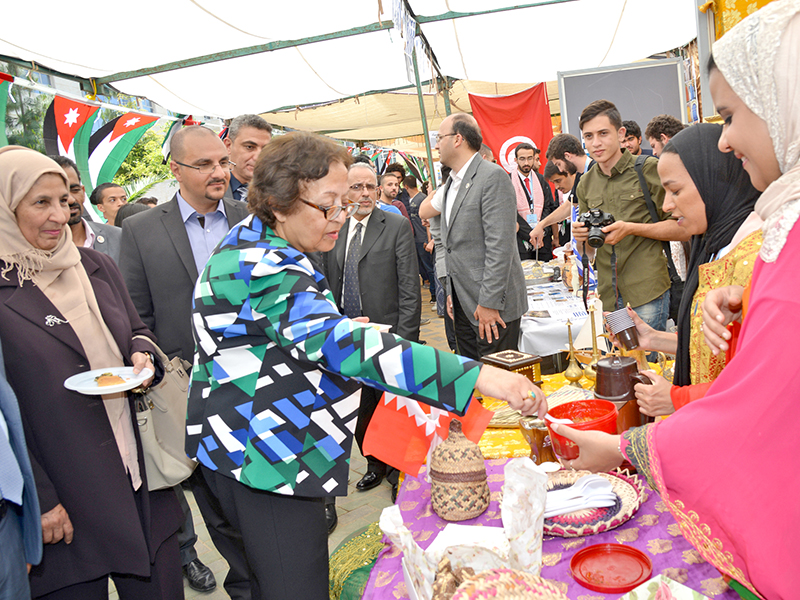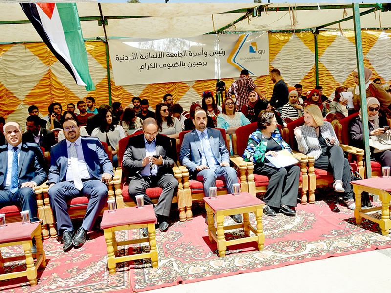 On Wednesday 9th of May 2018, The Deanship of Student Affairs (DSA) at the German Jordanian University (GJU), opened the Second Cultural Exhibition for Foreign Students, representing 31 Arab and foreign nationalities, in the presence of a number of Arab and foreign cultural attachés and a group of students and faculty members.