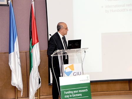 Deanship of Graduate Studies and Scientific Research at German Jordanian University (GJU) organized a Short Seminar on Alexander von Humboldt fellowships on Sunday 05/03/2017 represented by its Ambassador Scientist in Jordan Professor Dr. Hani Hayajneh.