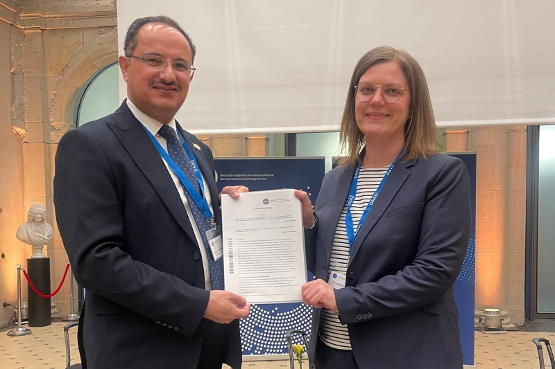 The German Jordanian University (GJU) is proud to announce the signing of the contract for the SyrIA – Syrian Innovation in Academia project by the President of GJU, Prof. Ala'aldeen Al-Halhouli, together with Ms. Petra Bogenschneider, Head of Division for Academic Cooperation Programmes in the Middle East, Africa, and Latin America at the German Academic Exchange Service (DAAD).