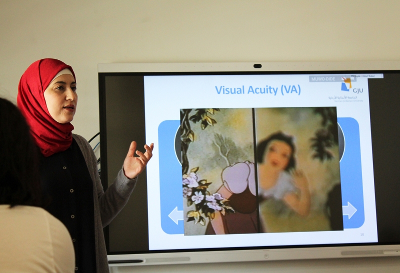 The Vision Rehabilitation Center (VRC) at the German Jordanian University (GJU) held two workshops for fifth year students of the German Jordanian University- School of Architecture and The Built Environment (SABE), presented by Ms. Maisa Masoud, the lecturer and vision rehabilitation specialist at VRC.